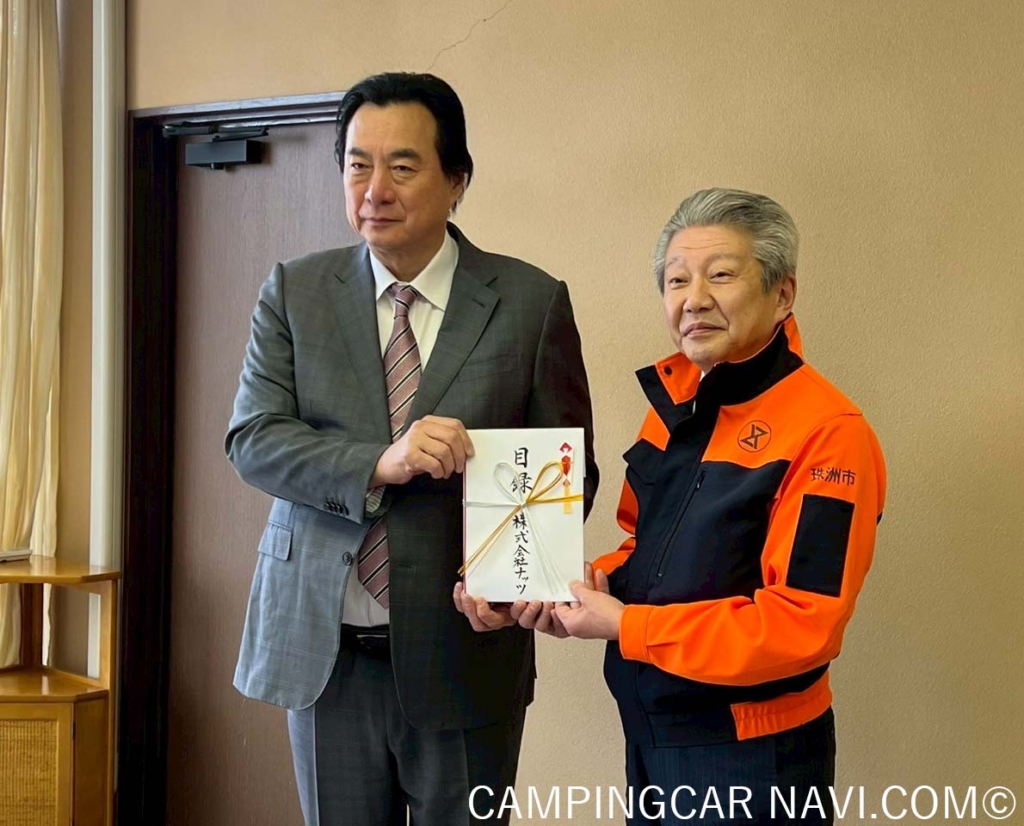 【ナッツRV】が 石川県珠洲市へ「令和6年能登半島地震・豪雨災害」に対する 義援金134.4万円およびキャンピングカーを寄贈!