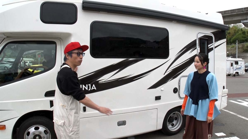 初回に田村淳が用意したキャンピングカーは、㈱ダイレクトカーズのNINJA!まるでホテルのような優雅な車内空間と、特別な「からくり」が装備された充実機能のキャンピングカーです。