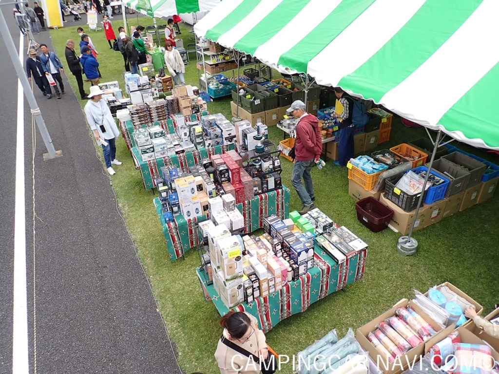 アウトドア用品やキャンピングカー専用製品など、会場特価のお得な掘り出し物を販売するコーナーもあります。